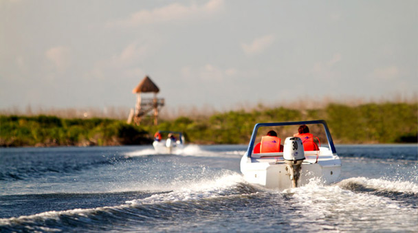 • Ride a boat through the ocean and lagoon of Cancun